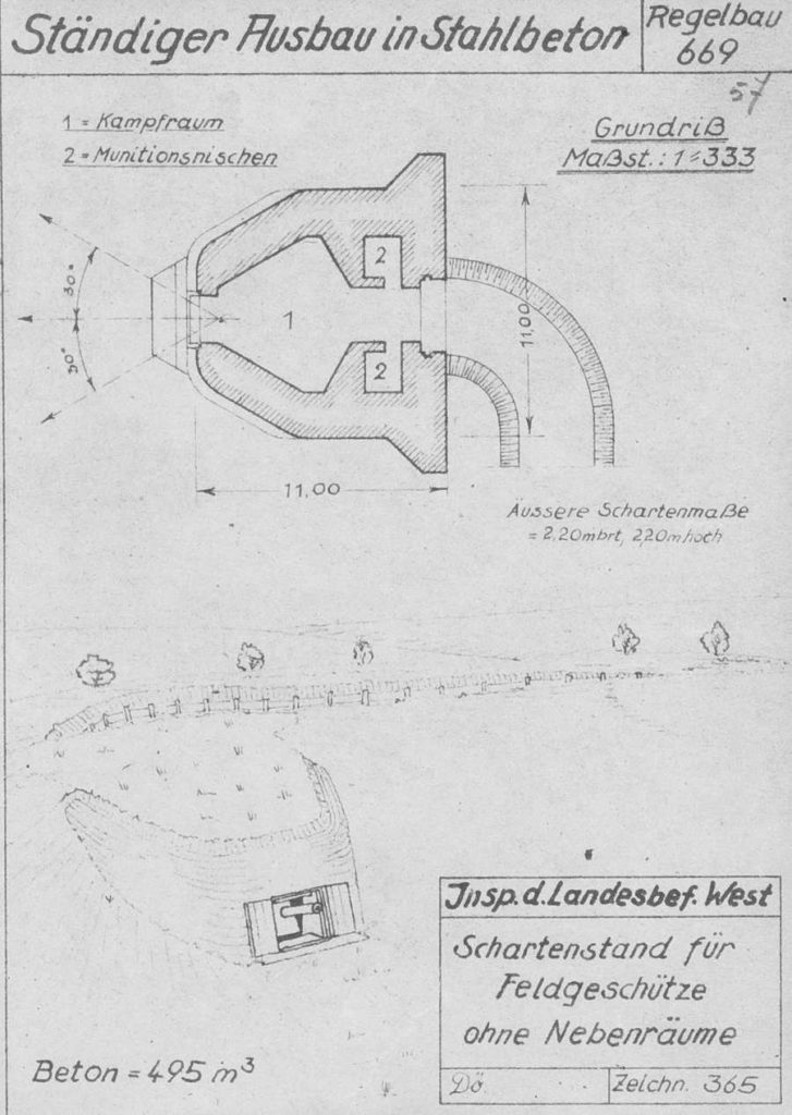 La disposition des regelbau 669 varie selon les positions en permettant soit un tir frontal ou de flanquement. L’angle de tir possible varie latéralement de -30° à 30° par rapport à l’axe de la casemate et de -9° à 35° en hauteur.